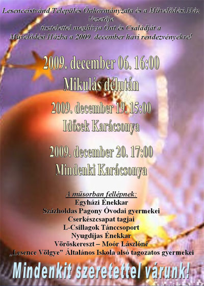2009. december 25-én Lesenceistvándon a Római Katolikus templomban a Szentmisét Varnus Xavér orgonajátékával Dr. Bécsi László plébános celebrálja! |